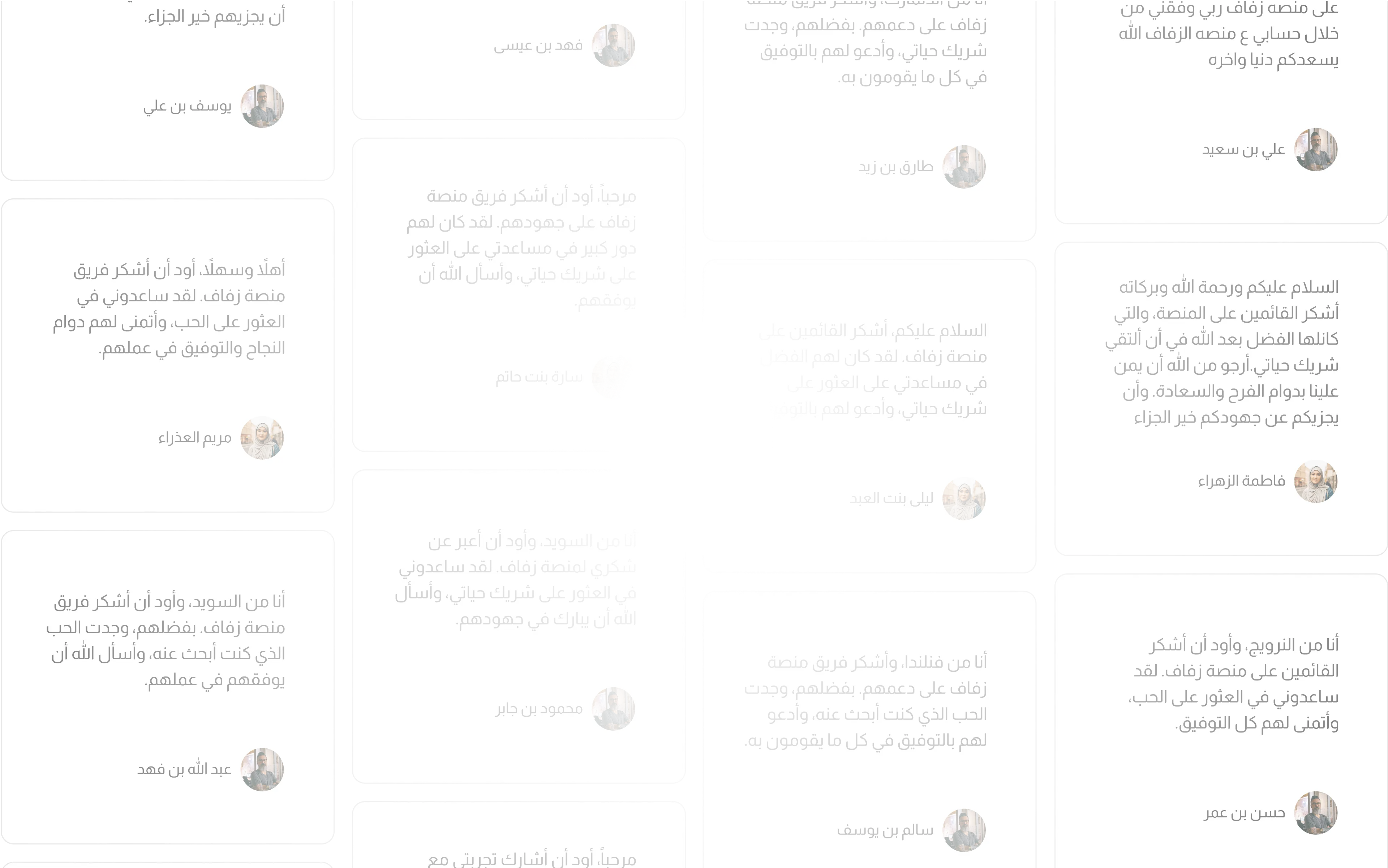 اقرأ كيف ساعدتهم منصة زفاف في العثور على شريك الحياة المناسب، بما يتوافق مع القيم الإسلامية، بطريقة آمنة وموثوقة.